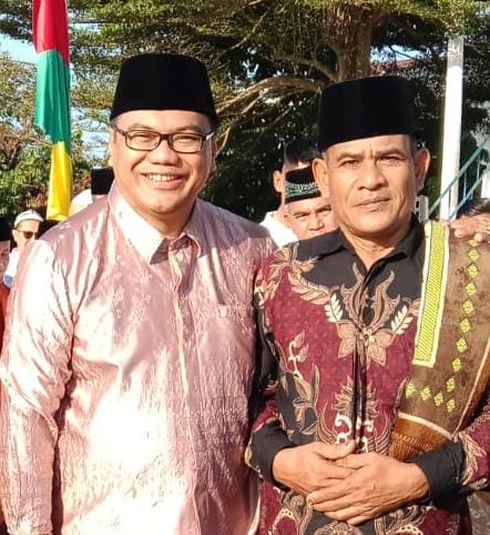 Bapak Abu Bakar Penasihat Ormas PKP DPC Kecamatan Sunggal berfoto bersama dengan Bapak Bupati Deli Serdang seusai Sholat idulfitri 1447 H di Lapangan Sepak Bola Sei. semayang Kecamatan Sunggal.
