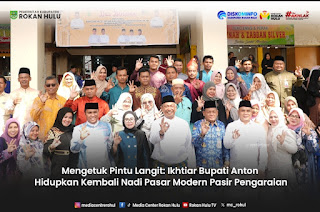 Suasana di Jumat pagi bupati Anton berkunjung ke Pasar Modern Pasir Pengaraian. Tak hanya riuh rendah tawar-menawar yang terdengar, namun lantunan doa yang khusyuk membumbung ke langit Rokan Hulu (Rohul). Di bawah tenda sederhana, Bupati Rohul H. Anton, ST, MM, duduk bersama masyarakat dan jajaran pejabat daerah dalam sebuah ritual spiritual: Syukuran dan Doa Bersama. Di halaman pasar modern, Jumat (17/4/2026).