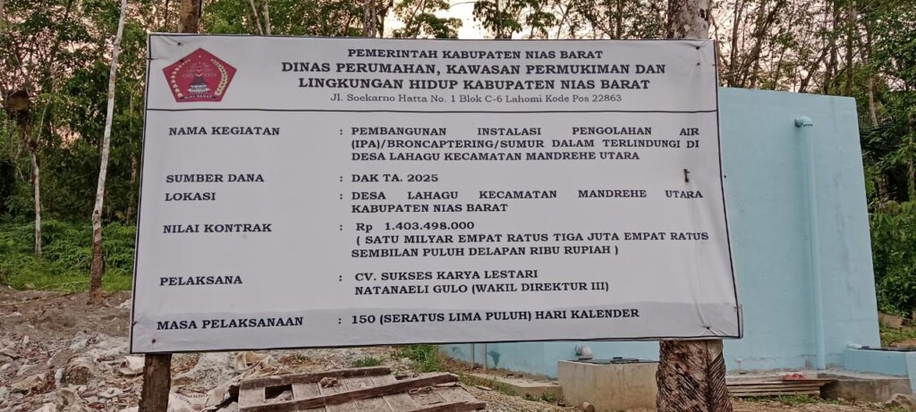 NIAS BARAT, SUMATERA UTARA-Pembangunan Instalasi Pengelolaan Air (IPA) sistem Broncaptering/Sumur Dalam Terlindungi di Desa Lahagu, Kecamatan Mandrehe Utara, Kabupaten Nias Barat, memicu kekhawatiran warga setempat. Proyek yang menelan anggaran miliaran rupiah tersebut diduga dikerjakan dengan kualitas yang tidak memadai.
