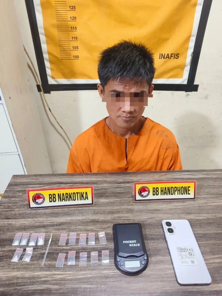 Indragiri Hilir-kennedynews.id Satuan Reserse Narkoba Polres Indragiri Hilir kembali berhasil mengungkap kasus dugaan tindak pidana narkotika jenis shabu di wilayah hukumnya. Seorang pria berinisial HS (31) diamankan petugas di kediamannya di Parit Bangka Hulu, Desa Suhada, Kecamatan Enok, Kabupaten Indragiri Hilir, pada Selasa (14/4/2026) sekitar pukul 17.30 WIB.Kapolres Indragiri Hilir AKBP Farouk Oktora,S.H,S.I.K,melalui Kasat Resnarkoba AKP Adam Efendi, SE., MH menjelaskan bahwa pengungkapan kasus ini berawal dari informasi masyarakat yang menyebutkan adanya aktivitas transaksi narkotika jenis shabu yang kerap dilakukan oleh tersangka di lokasi tersebut.Menindaklanjuti informasi tersebut, kami langsung melakukan penyelidikan hingga akhirnya memastikan keberadaan tersangka. Tim kemudian bergerak dan berhasil mengamankan pelaku di rumahnya,” ujar Kasat.Saat dilakukan penggeledahan yang disaksikan warga setempat, petugas menemukan sejumlah barang bukti berupa 6 paket shabu dengan berat total 1,25 gram, timbangan digital, plastik klip bening, sendok dari pipet plastik, serta satu unit handphone yang diduga digunakan untuk transaksi.Dari hasil pemeriksaan awal, tersangka mengakui berperan sebagai penjual atau pengedar. Ia juga mengaku mendapatkan barang haram tersebut dari seseorang berinisial R yang saat ini masih dalam penyelidikan petugas.Berdasarkan hasil tes urine, tersangka juga dinyatakan positif menggunakan narkotika,” tambahnya.Saat ini, tersangka beserta barang bukti telah diamankan di Mapolres Indragiri Hilir guna proses hukum lebih lanjut. Ia dijerat dengan Pasal 114 ayat (1) Undang-Undang RI Nomor 35 Tahun 2009 tentang Narkotika serta ketentuan dalam Undang-Undang RI Nomor 1 Tahun 2026 tentang Penyesuaian Pidana.Polres Inhil menegaskan komitmennya dalam memberantas peredaran narkoba dan mengimbau masyarakat untuk terus berperan aktif memberikan informasi apabila mengetahui adanya aktivitas mencurigakan terkait narkotika di lingkungan masing-masing.(s.waruhu)