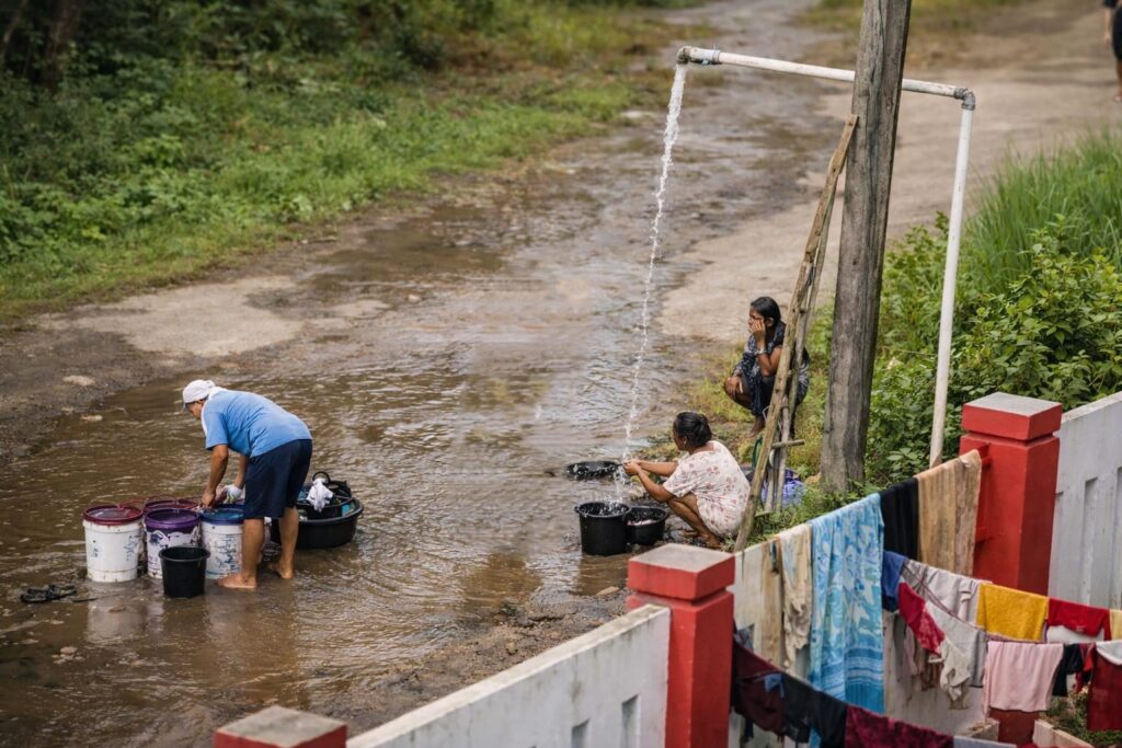 Sejak aliran terhenti, aktivitas sehari-hari berubah menjadi perjuangan fisik. Penghuni harus mengambil air dari sumber alternatif di sekitar bangunan, lalu mengangkutnya ke lantai masing-masing.