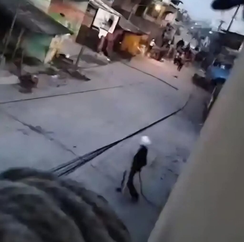 ‎Selain itu, kedua kubu saling lempar menggunakan batu dan bambu panjang. Sejumlah meja yang diduga milik pedagang setempat juga terlihat diseret ke tengah jalan.